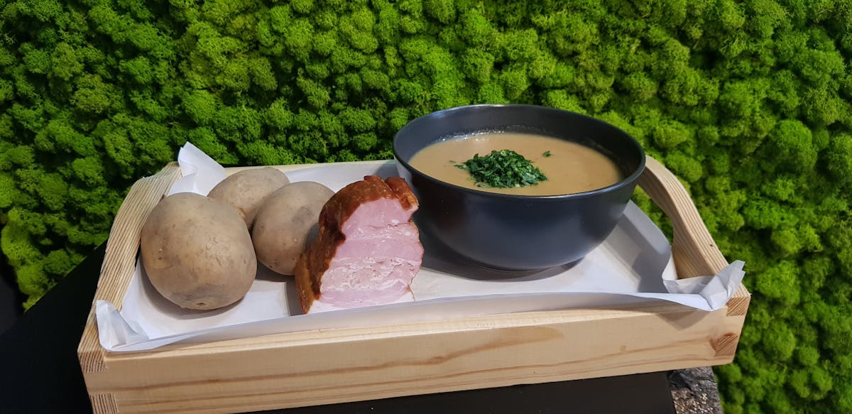 Schabowy marynowany w mleku i cebuli. Panierowany smażony na smalcu, podawany z frytkami belgijskimi oraz kapustą zasmażaną.